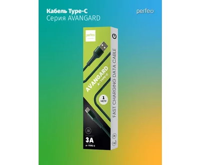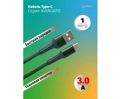 Кабель PERFEO USB A вилка - C вилка, 3A, зеленый, длина 1 м., AVANGARD (U4713)