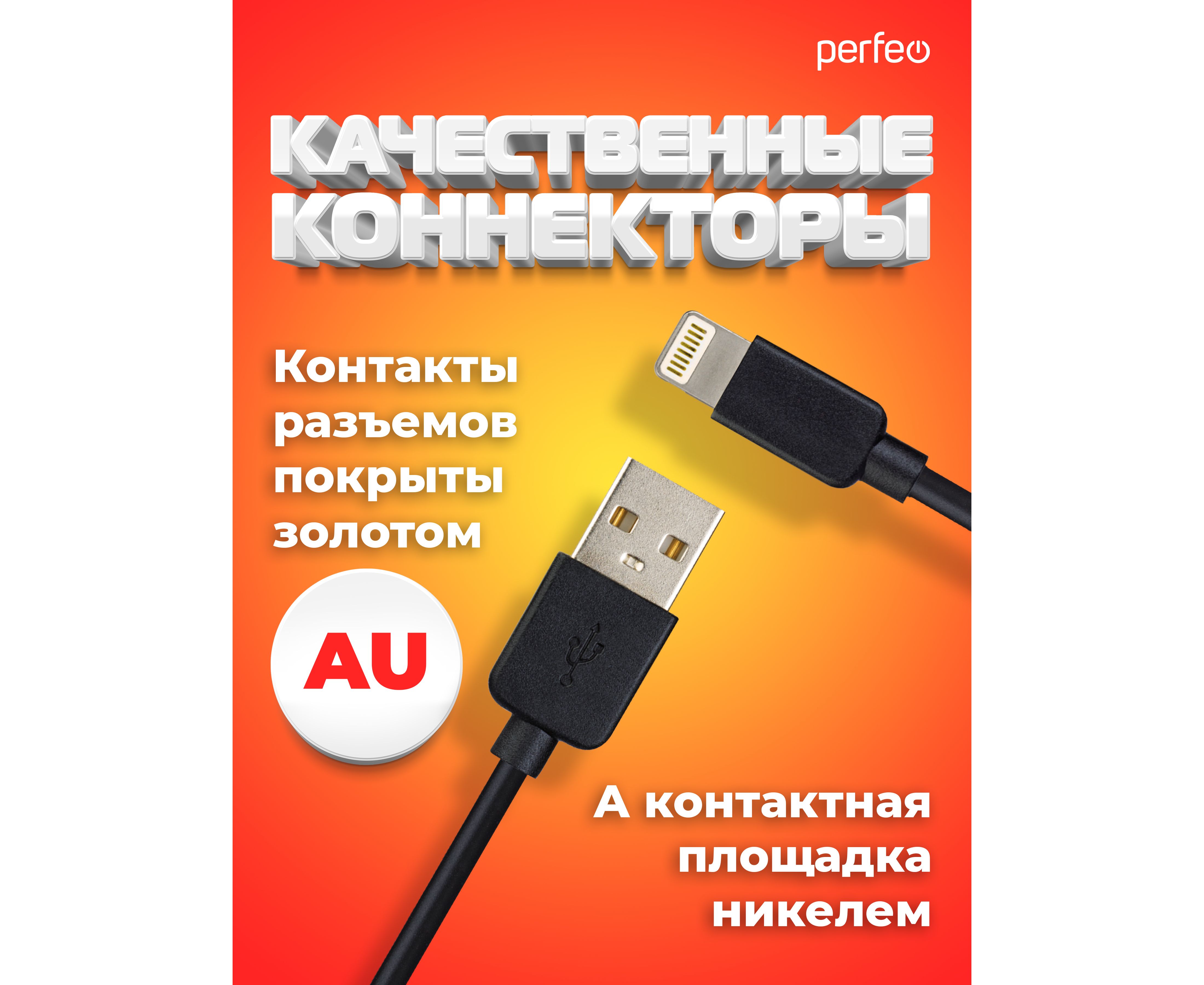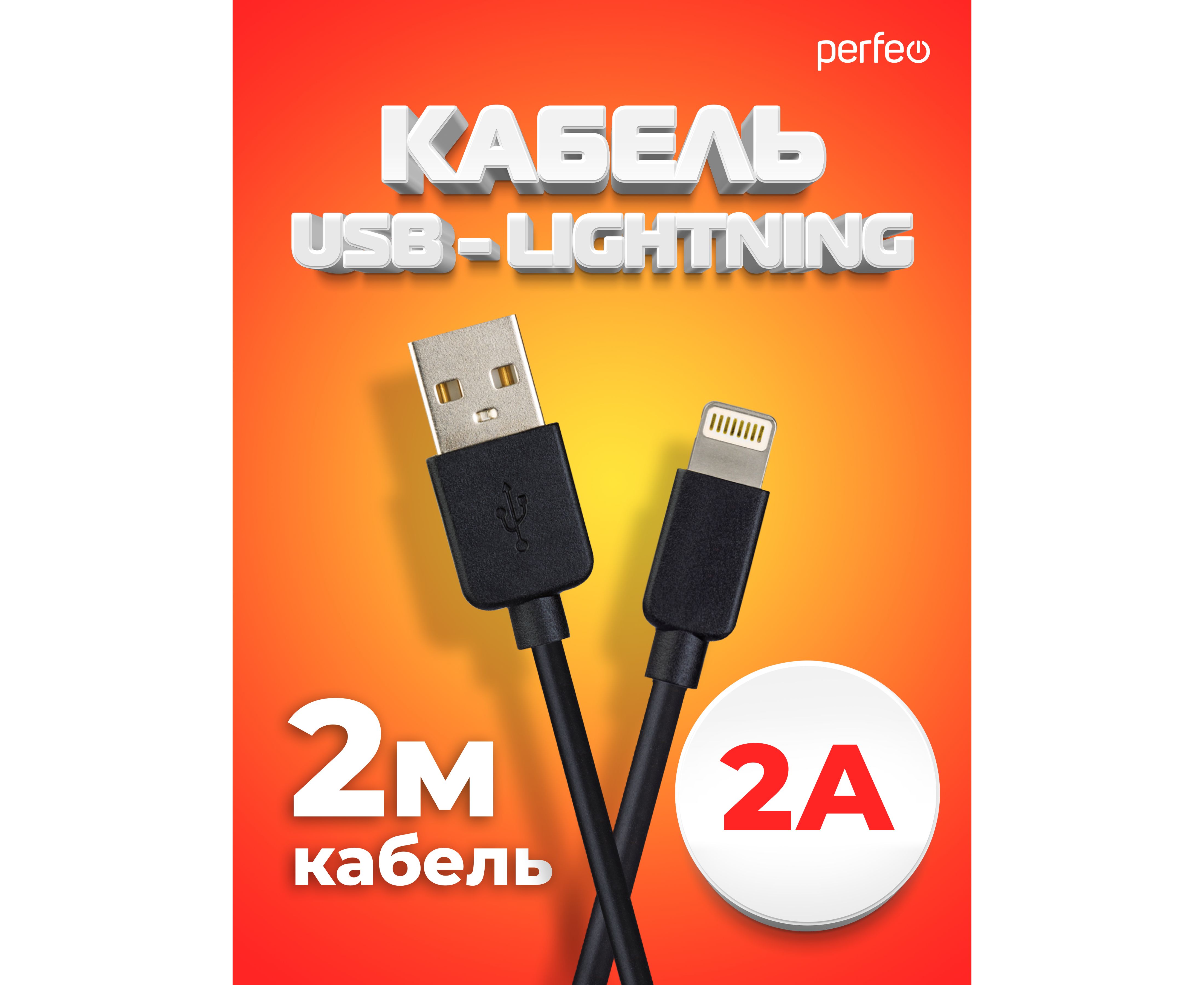 Кабель PERFEO USB A вилка - Lightning вилка, 2A, черный, длина 2 м., TWO (I4321)