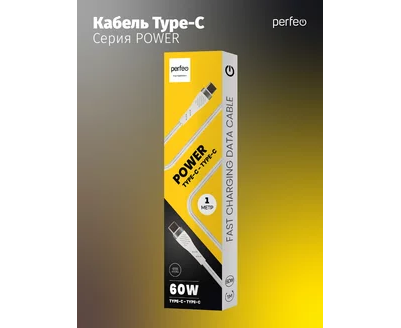 Кабель PERFEO USB C вилка - C вилка, 60W, белый, длина 1 м., POWER (C1104)