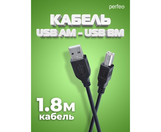 Кабель PERFEO USB2.0 A вилка - В вилка, длина 1,8 м. (U4102)