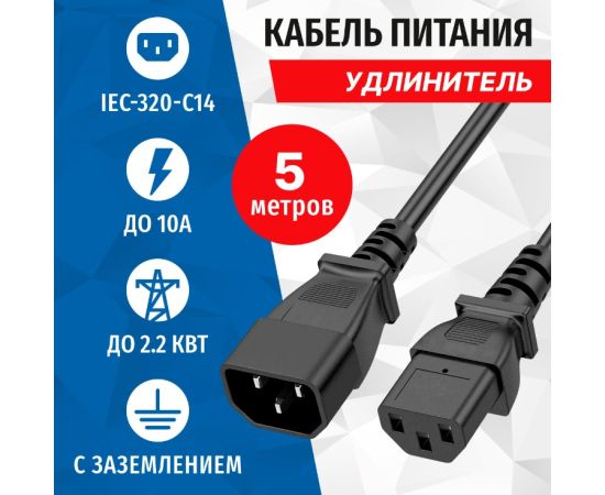 Кабель питания 5bites IEC-320-C13 UPS - IEC-320-C14, 220V, сечение 3x0.50мм2, 1.8м PC105-18A с заземлением применяется для подключения к ИБП защищаемого оборудования.