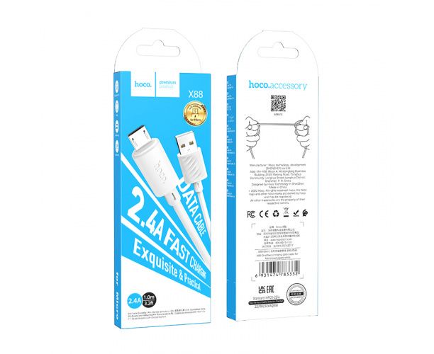Кабель Type-C - 8 pin HOCO X88 Gratified, 1.0м, круглый, 2.4A, силикон, PD20W, цвет: чёрный упакован (1/34)