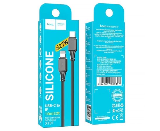Кабель Type-C - Apple lightning Hoco X101 Assistant PD 27W 100см 3A (black) (240145)