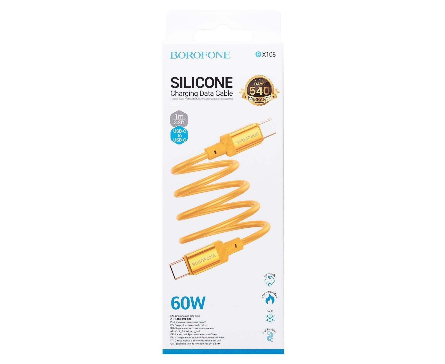 Кабель Type-C - Type-C Borofone BX108 PD 60W 100см 3A (gold) (234666)