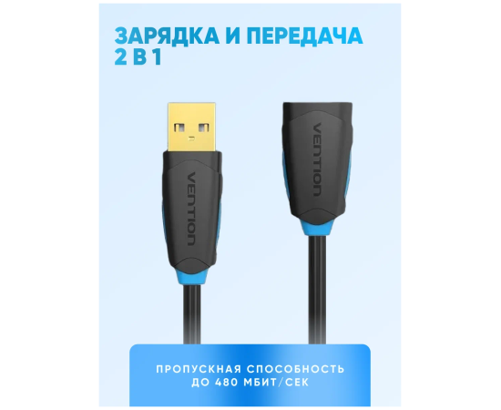 Кабель удлинитель Vention CBCBI USB 2.0 AM/AF 3м черный