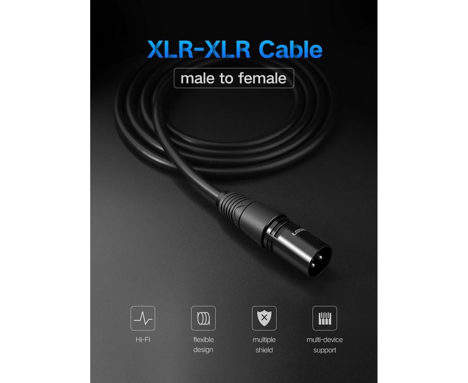 Кабель UGREEN AV130 20710 Cannon Male to Female Microphone Extension Audio Cable 2m Black