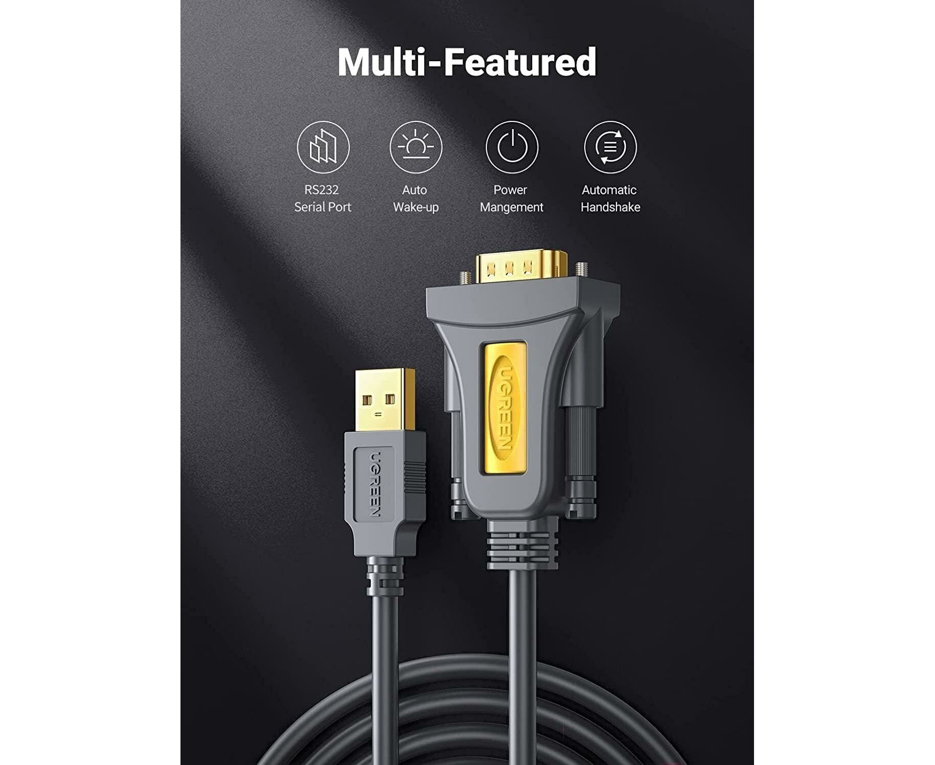 Кабель UGREEN CR104 20222 USB 2.0 A To DB9 RS-232 Male Adapter Cable 2m Grey