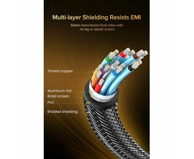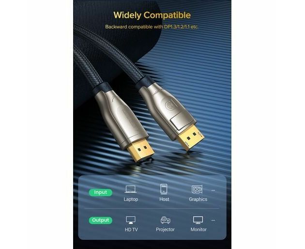 Кабель UGREEN DP112 60842 1.4 DP M/M Round Cable Zinc Alloy Shell with Braided 1m Black