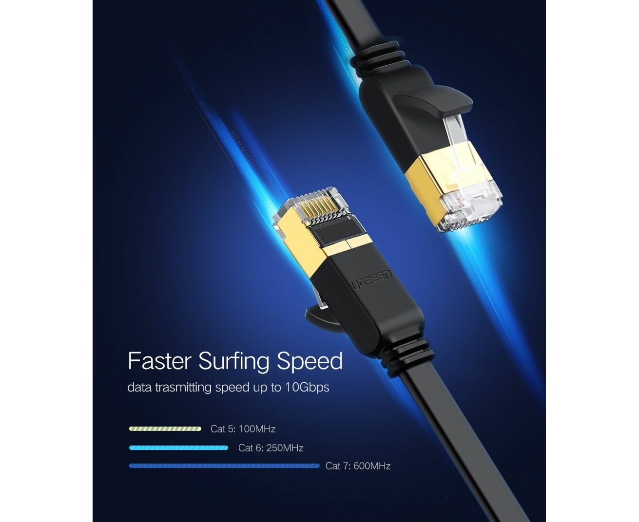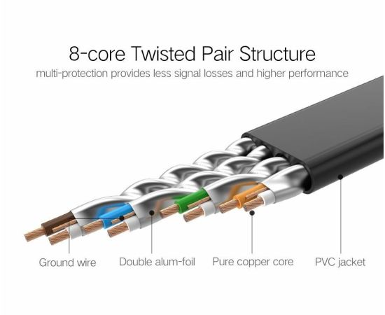 Кабель UGREEN NW106 11261 Cat 7 U/FTP Lan Cable Flat Design 2m Black