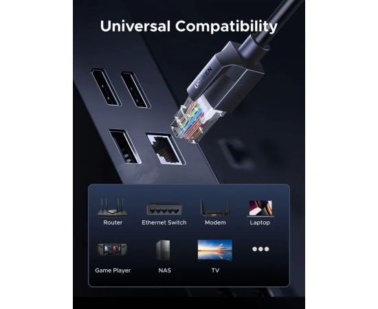 Кабель UGREEN NW315 (55154) Cat6A UTP Ethernet Cable 0.5m Black