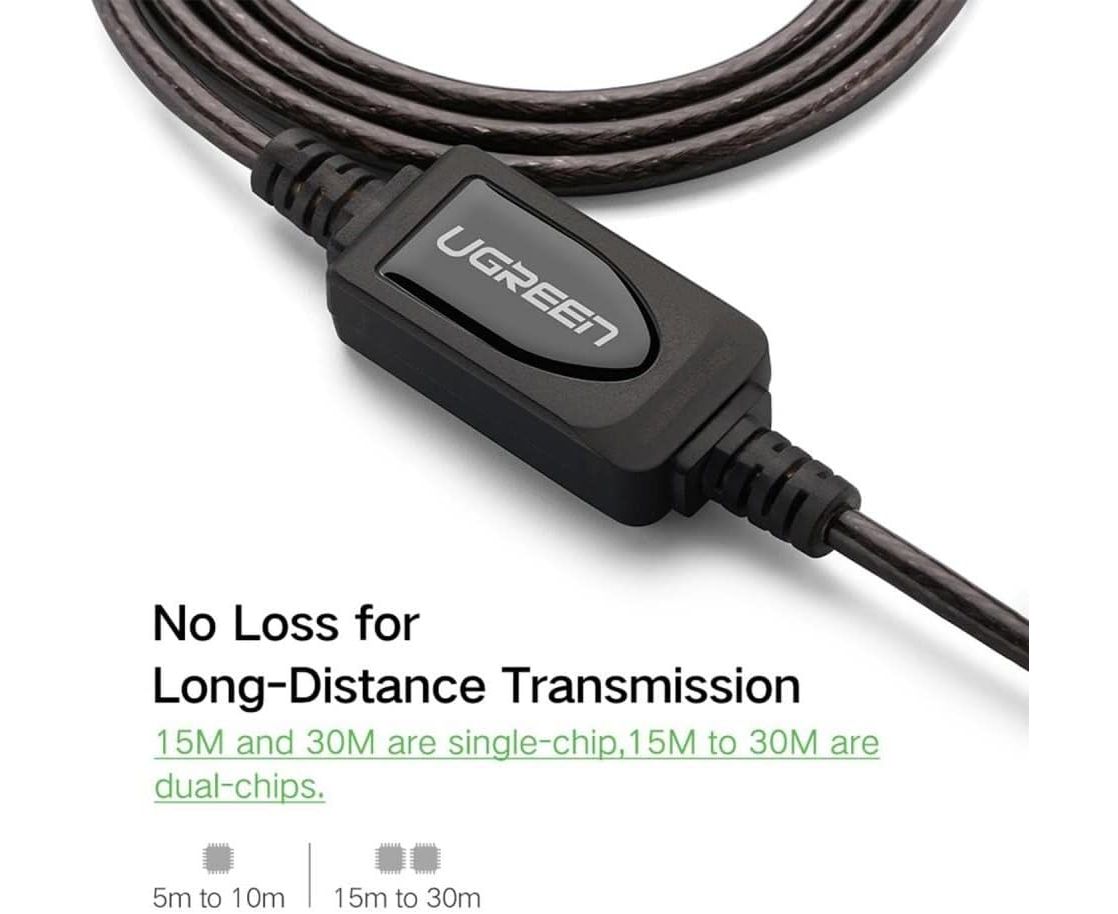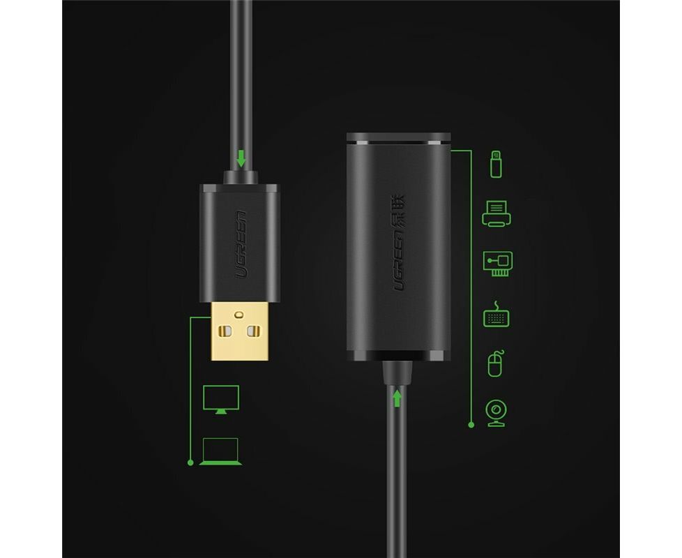 Кабель UGREEN US121 10321 USB 2.0 Active Extension Cable with Chipset 10m Black