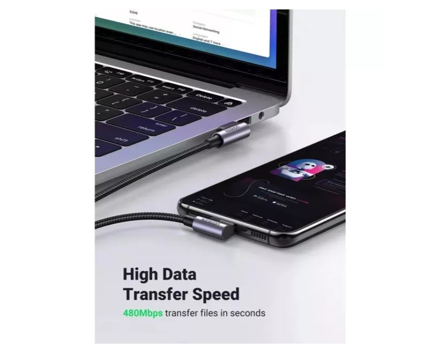 Кабель UGREEN US176 (20856) Right Angle USB-A to USB-C Cable 1m Space Gray