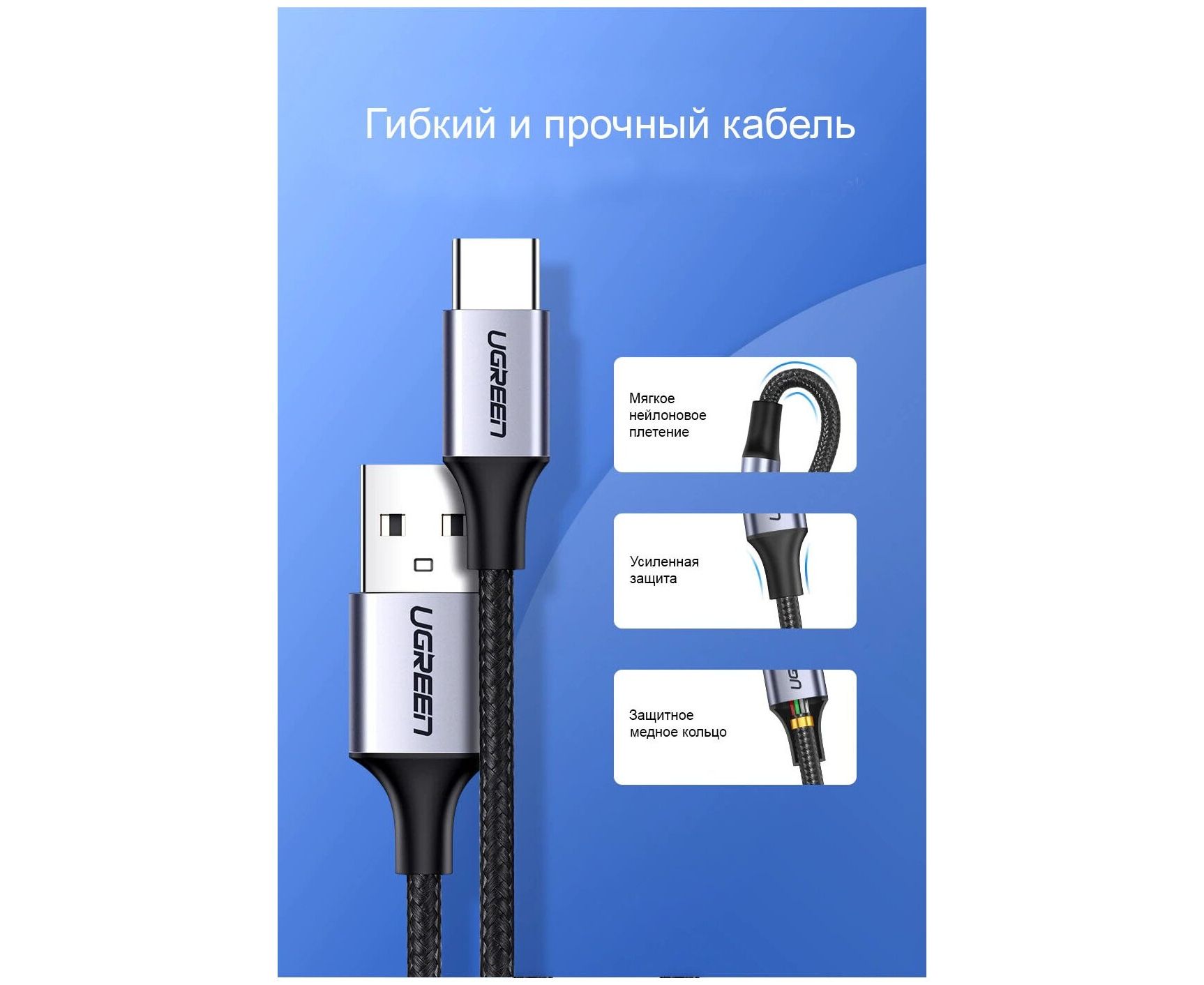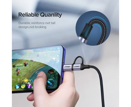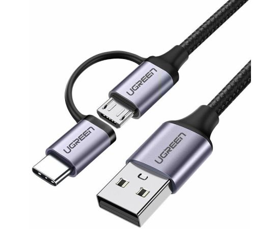 Кабель UGREEN US177 30875 USB-A to Micro USB + USB Type-C Cable 1m Black