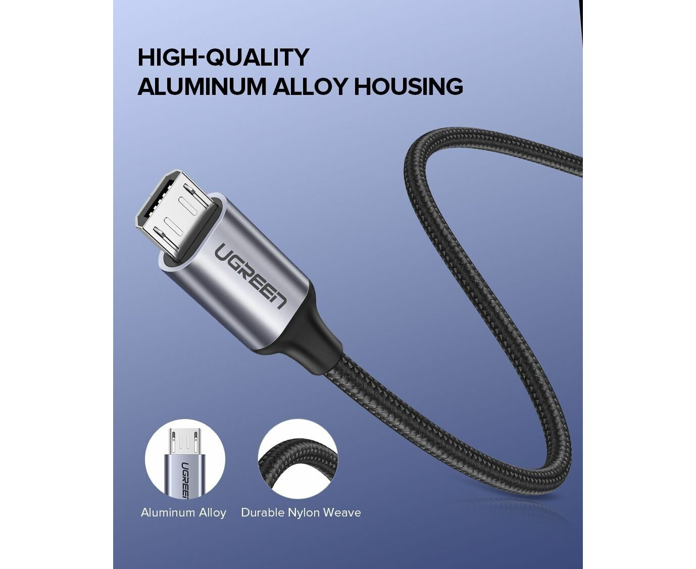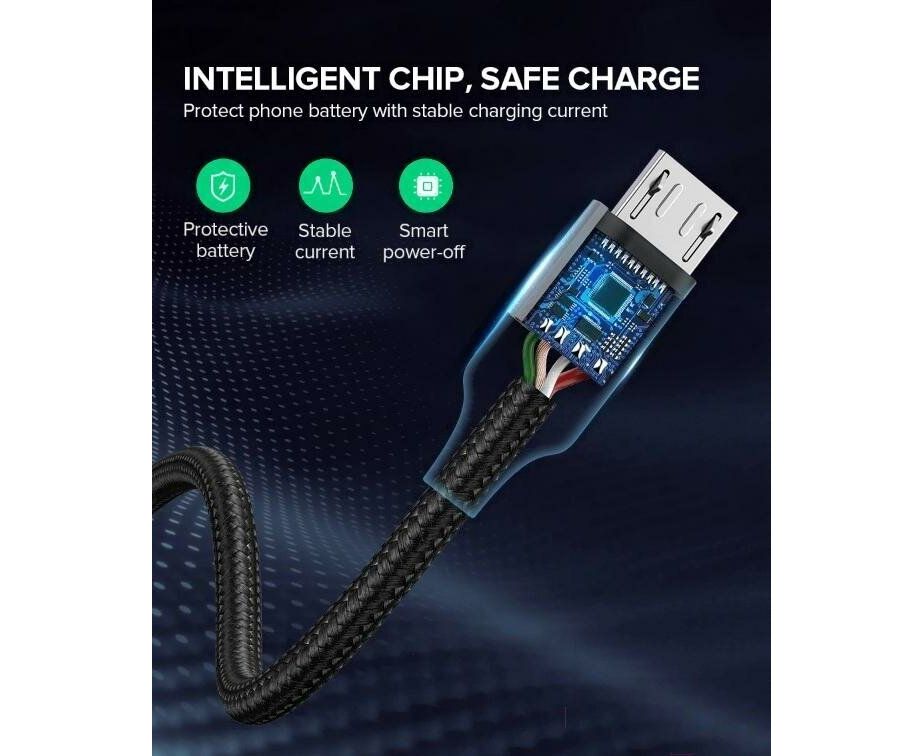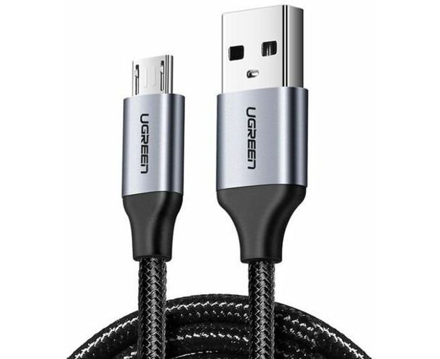 Кабель UGREEN US290 60148 USB 2.0 A to Micro USB Cable Nickel Plating Alu Braid 2m Grey/Black