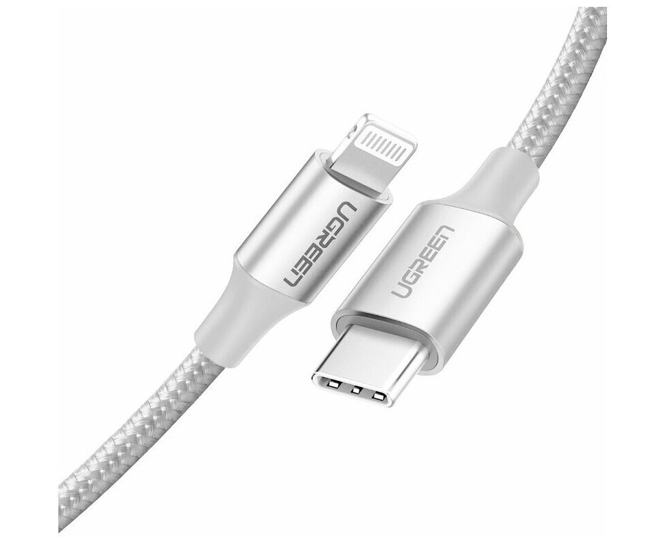 Кабель UGreen US304 (70525) USB-C to Lightning Cable Braided 2 м серебристый