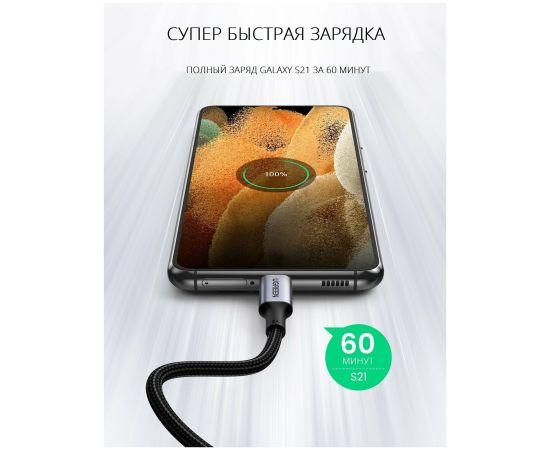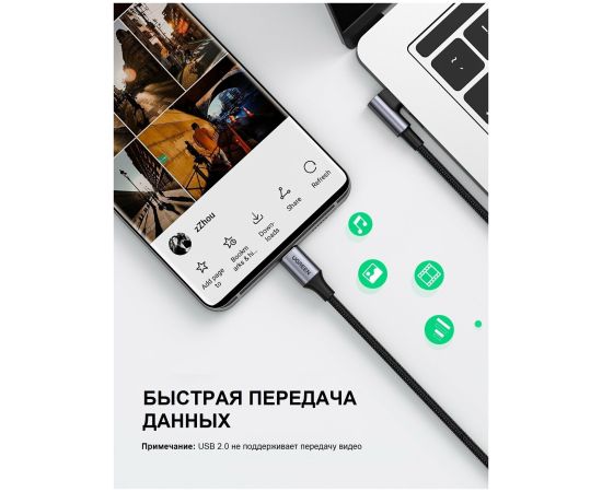 Кабель UGREEN US334 (70645) USB-C 2.0 Male To Angled 90° USB-C 2.0 Male 5A 2m - Black