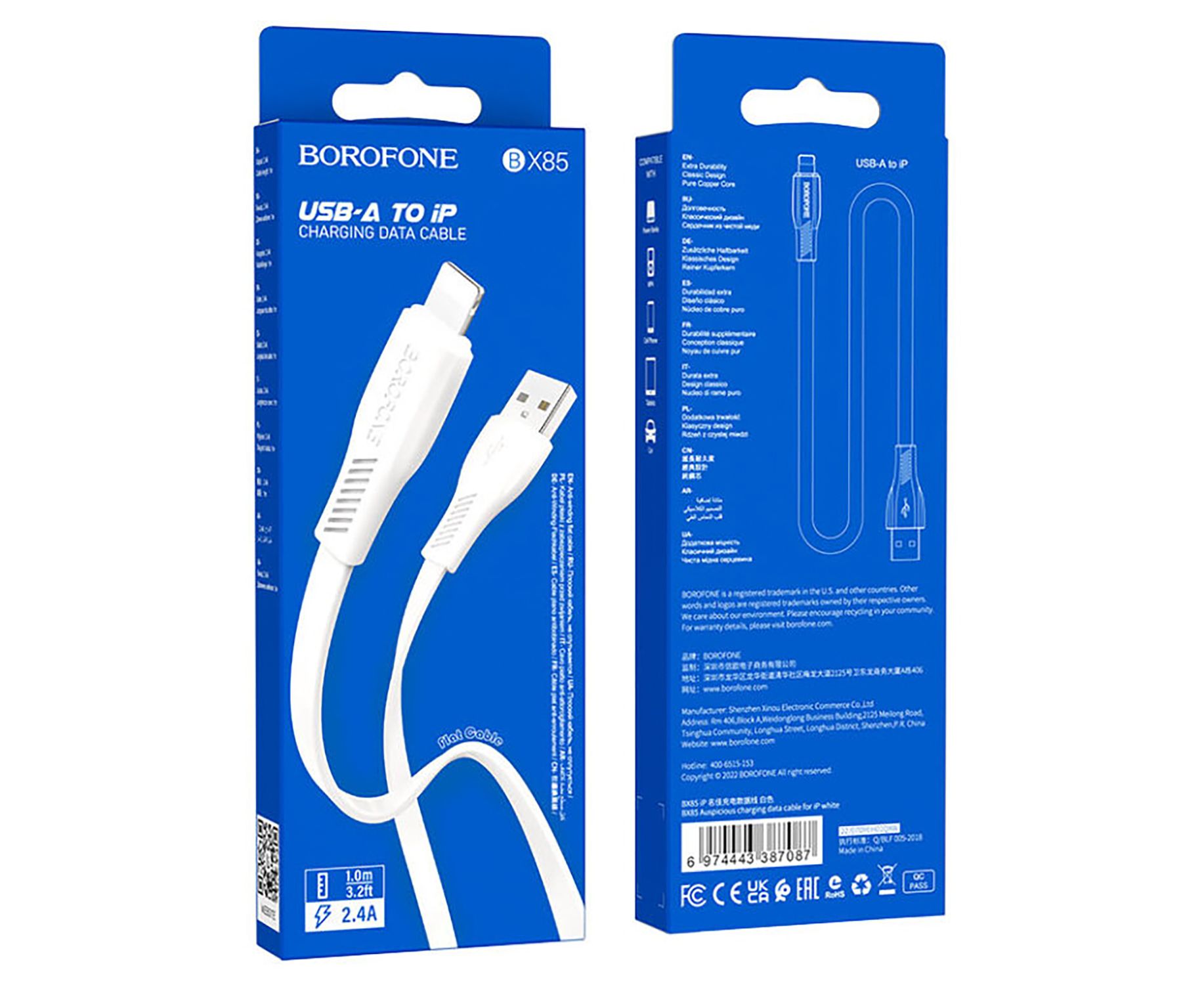 Кабель USB - Apple lightning Borofone BX85 100см 2,4A (white) (217529)