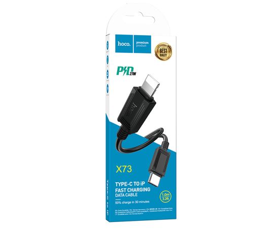 Кабель USB-C HOCO X73 Type-C - Lightning, 20W, 1 м, черный