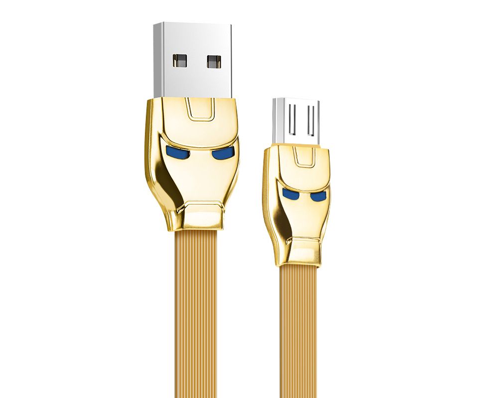Кабель для зарядки Micro-USB U14 Steel man длиной 1,2 м, с внешней оплеткой из TPE с напряжением 2,4 А, корпус из ABS, совместимый с чехлами для телефонов, с двумя синими индикаторами