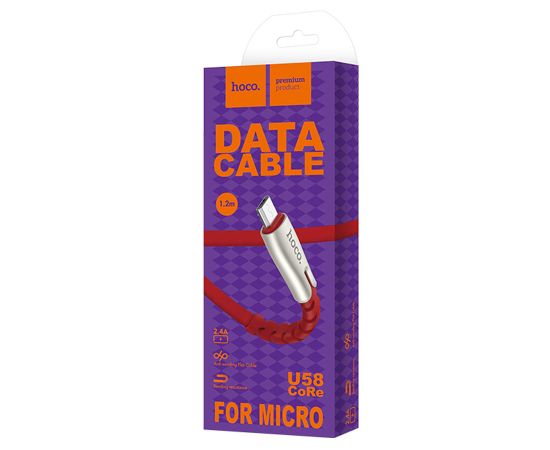 Кабель USB HOCO U58 Core USB - MicroUSB, 2.4А, 1.2 м, красный