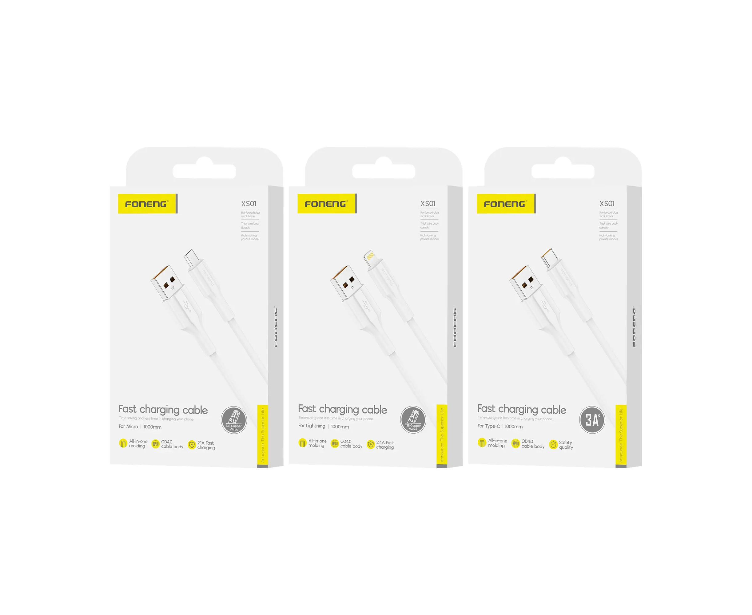 Кабель USB - Micro-USB Foneng XS01 1M, 2.1A (White)
