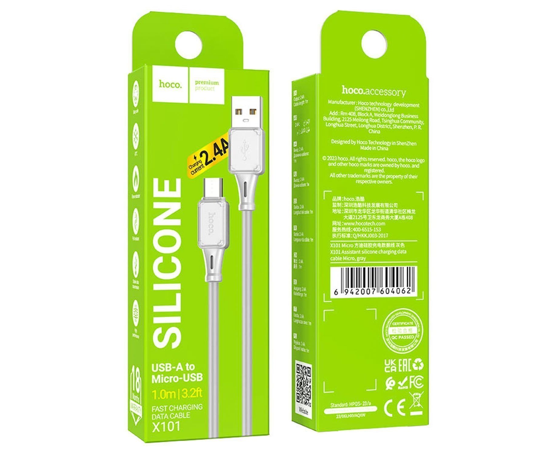 Кабель USB - micro USB Hoco X101 Assistant 12W 100см 2,4A (gray) (240331)
