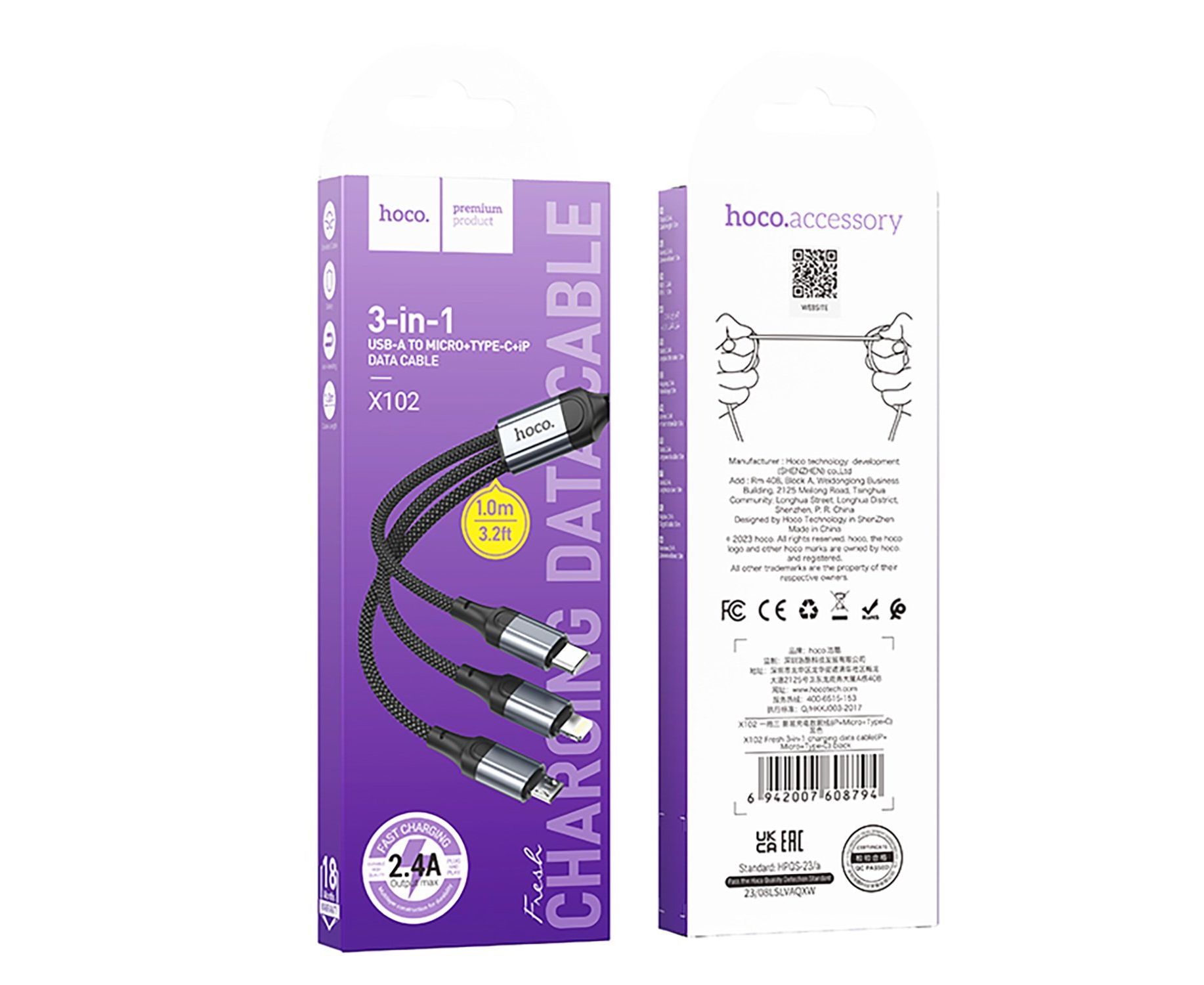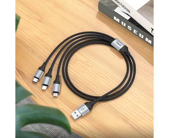 Кабель USB - Multi connector Hoco X102 3in1 12W 100см 2,4A (black) (235046)