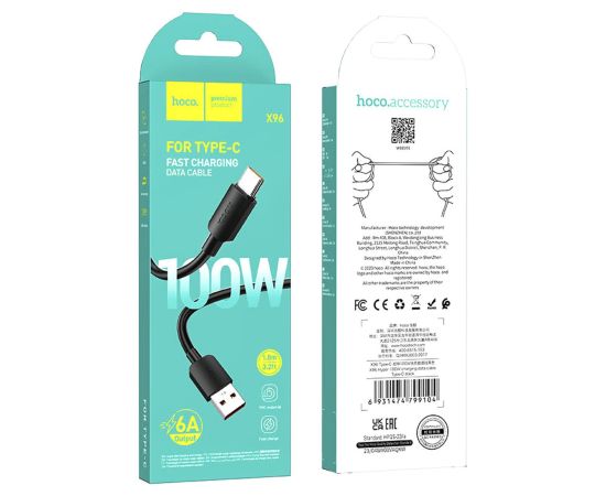 Кабель USB - Type-C Hoco X96 100W 25см 6A (black) (222408)