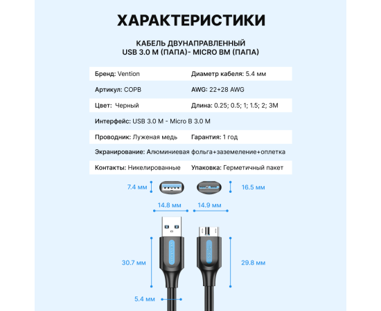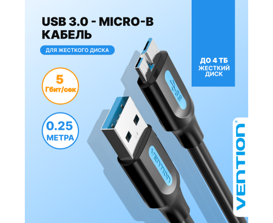 Кабель Vention COPBC USB 3.0 AM/micro B 0,25м
