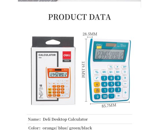 Калькулятор настольный Deli E1122/OR оранжевый