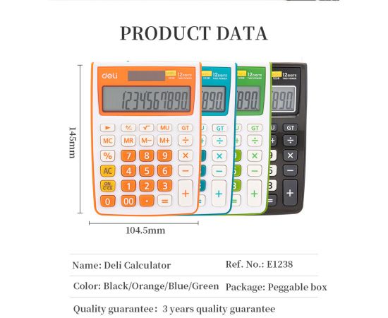 Калькулятор настольный Deli E1238/GRN зеленый