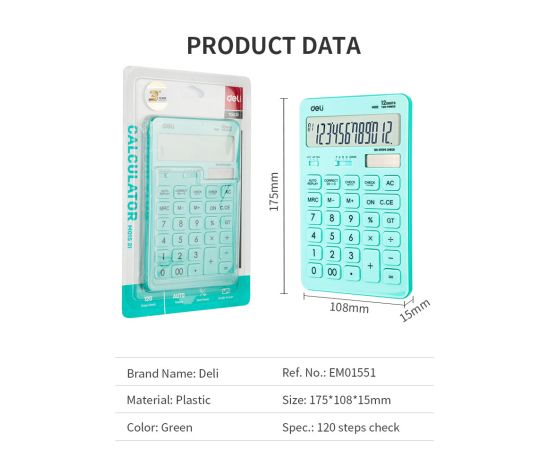 Калькулятор настольный Deli Touch EM01531 голубой