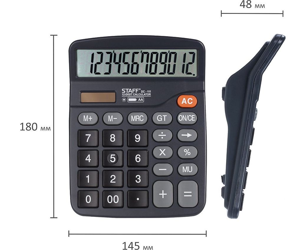 Простой в использовании и точный в расчётах настольный калькулятор STAFF PLUS STF-111 выполняет все необходимые вычисления на работе и дома. Кнопки нажимаются легко и приятно, эргономичный наклон корпуса позволяет работать с максимальным комфортом.