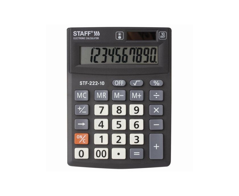 Калькулятор настольный STAFF PLUS STF-222, компактный (138x103 мм), 10 разрядов, двойное питание