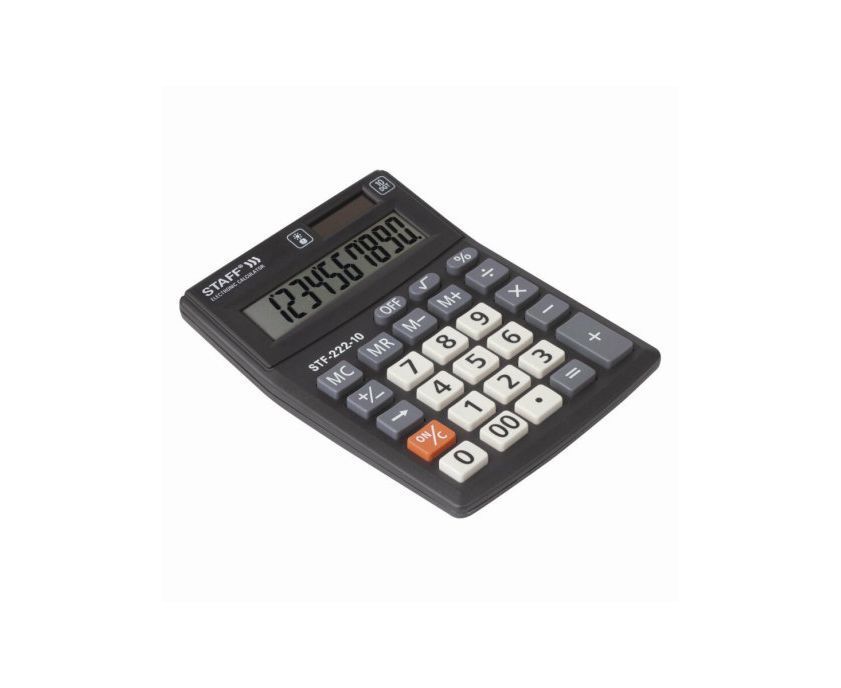 Настольный калькулятор STAFF PLUS STF-222 выполняет все необходимые вычисления и не занимает много места на рабочем столе. Большой дисплей и эргономичный наклон корпуса позволяют работать с максимальным комфортом, несмотря на компактный размер.