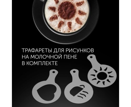 Устройство для вспенивания молока для приготовления молочно-кофейных напитков. Имеет 4 режима работы, с помощью которых вы сможете приготовить любой желаемый кофе с молочной пенкой. Режимы работы: вспенивание молока для капучино, вспенивание молока для латте, подогрев молока без вспенивания, вспенивание молока без подогрева.