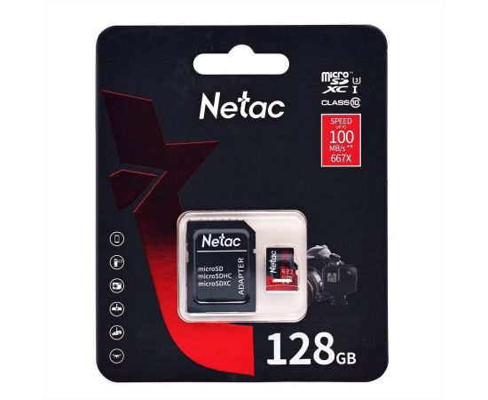 Карта флэш-памяти MicroSD 128 Гб Netac P500 Extreme Pro UHS-I (100 Mb/s) + SD адаптер (Class(222568)