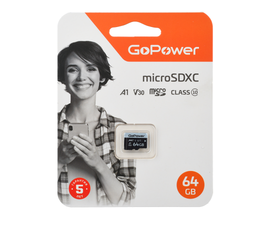 Карта памяти microSD GoPower 64GB Class10 70 МБ/сек V30 без адаптера