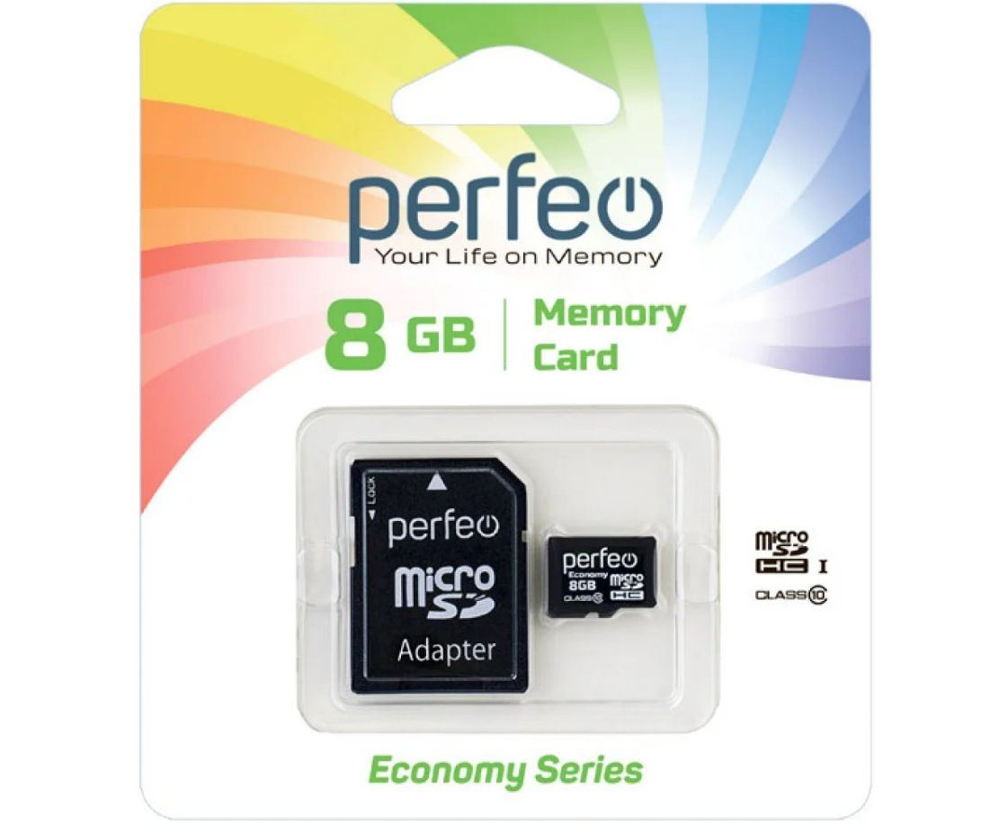 Карта памяти Perfeo microSD 8GB High-Capacity (Class 10) (серия экономи), (Арт. PF8GMCSH10AES)