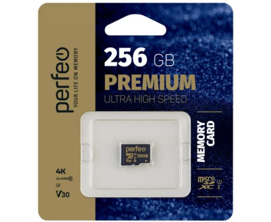 Карта памяти Perfeo microSDXC 256GB High-Capacity (Class 10) UHS-3 V30 без адаптера, (Арт. PF256GMCSX10V30)