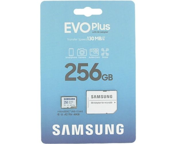 Карта памяти Samsung Evo Plus (MB-MC256SA/EU) 256GB microSDXC Class 10, A2, V30, UHS-I, W 90 МБ/с, R 160 МБ/с, адаптер на SD