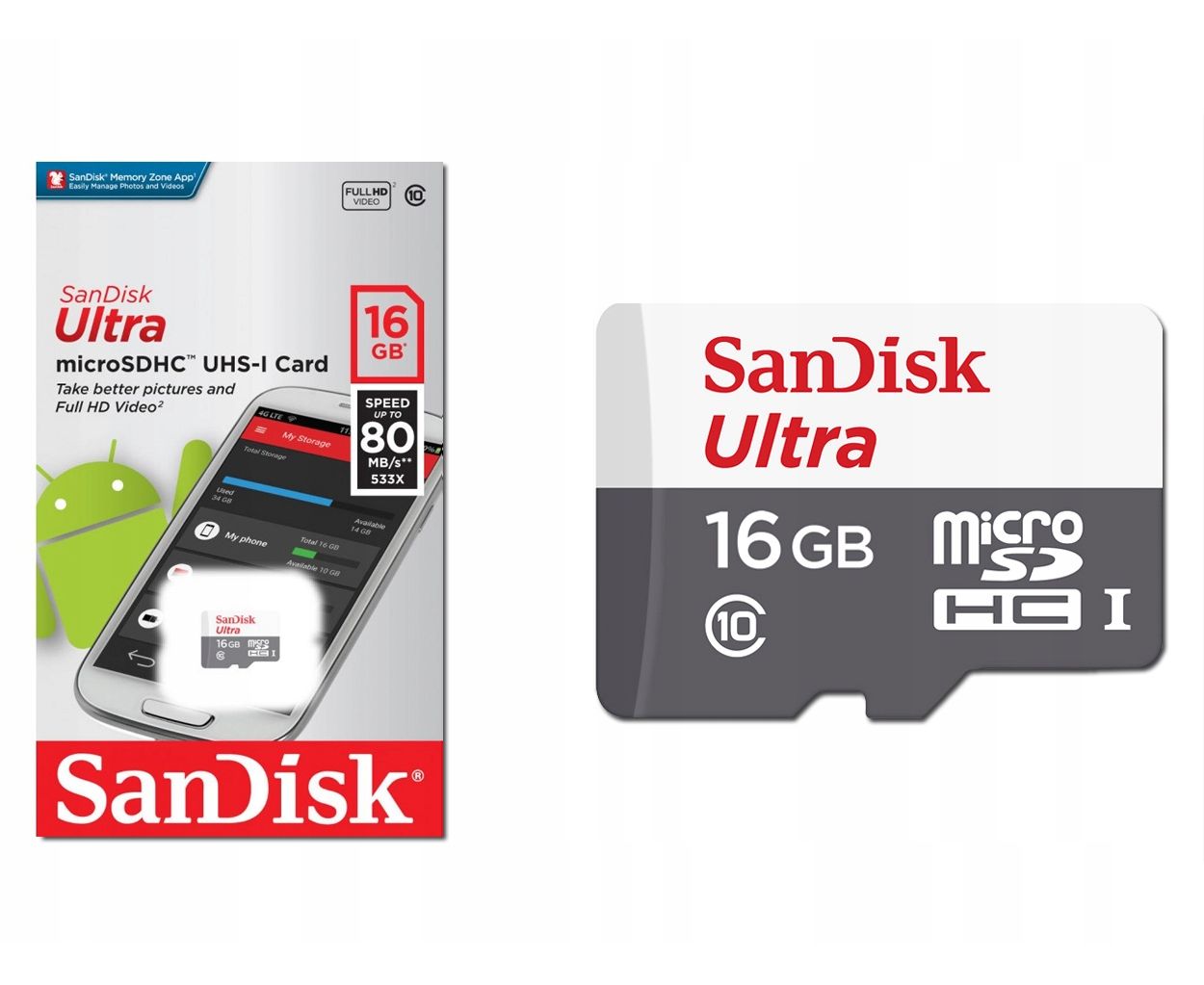 Карта памяти SanDisk microSDHC 16Gb Class 10 Ultra 80MB/s