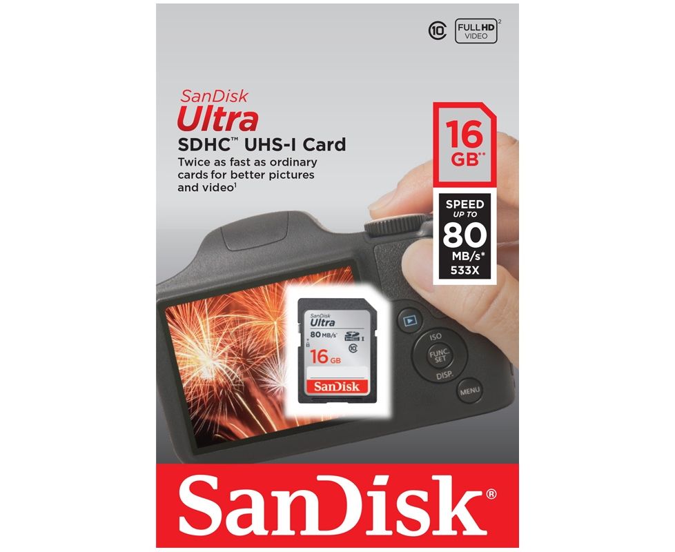 Карта памяти Sandisk SDSDUNC-016G-GN6IN Ultra SDHC 16GB 80MB/s Class 10 UHS-I