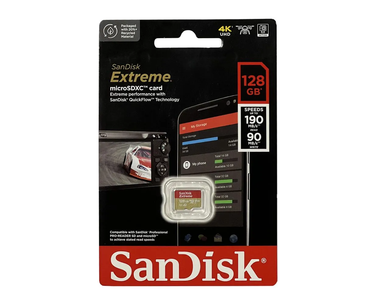 Карта памяти SanDisk (SDSQXAA-128G-GN6MN) 128GB microSDXC Class 10 UHS-I A2 C10 V30 U3 Extreme 190MB/s