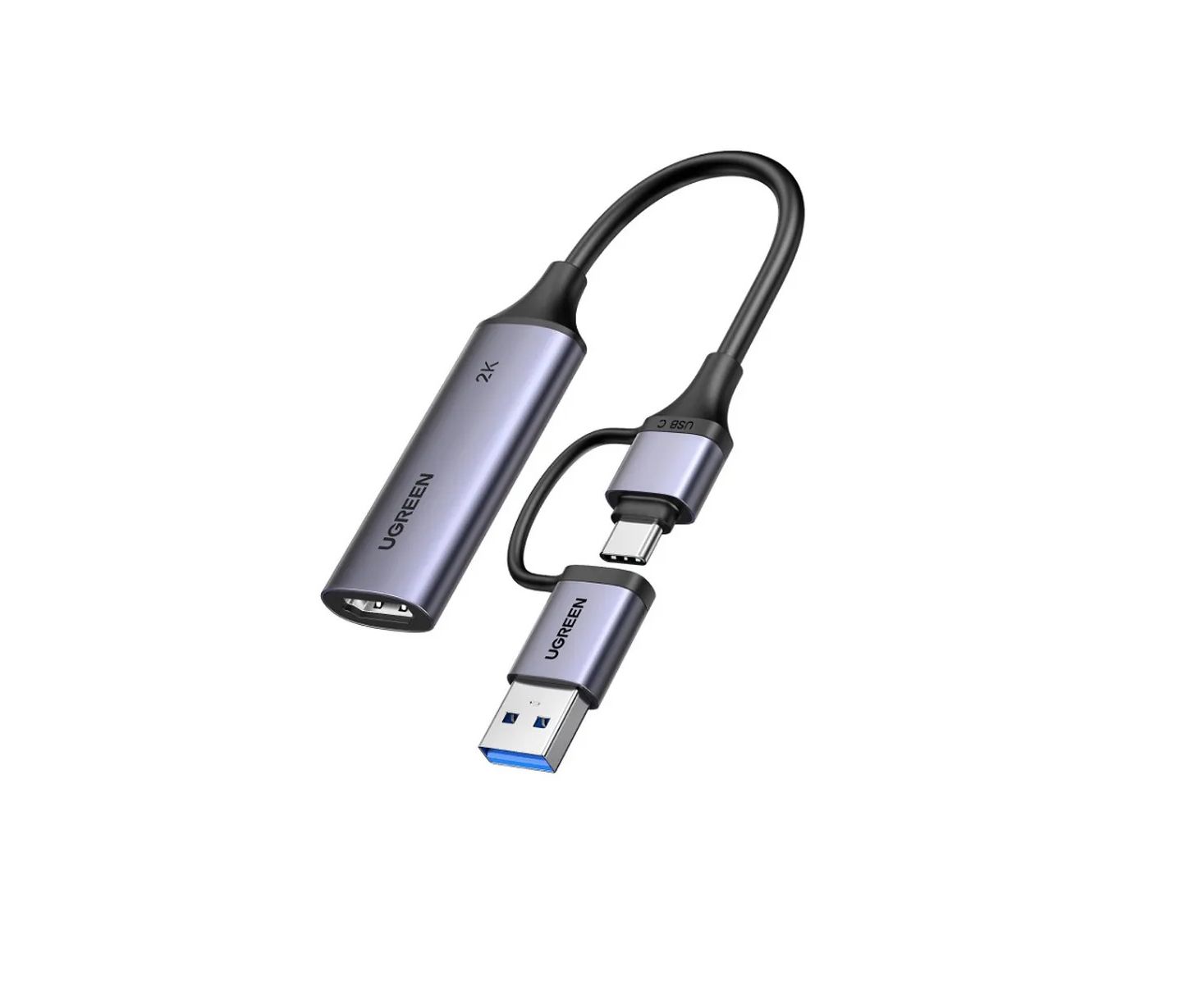 Карта видеозахвата UGREEN CM629 (15389) HD HDMI USB-C/USB-A 4K 30Hz Video Capture Card серый космос