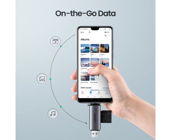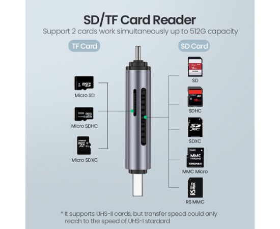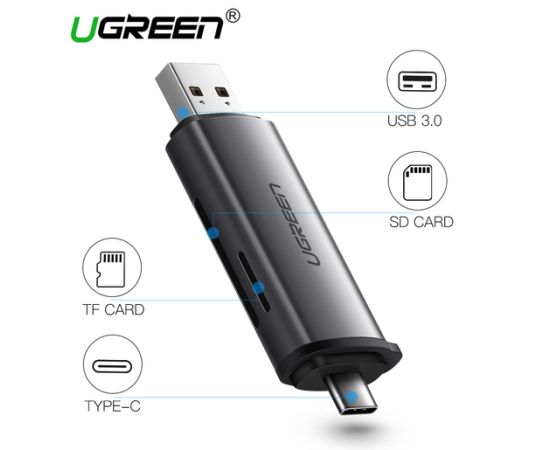 Кардридер UGREEN CM185 (50706) USB-C/USB-A Card Reader. Цвет: серый