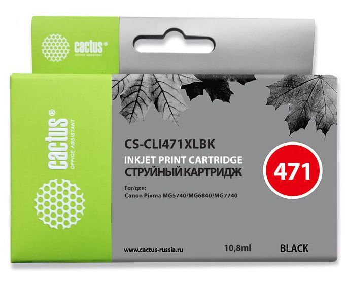 Картридж Cactus CLI-471XL (CS-CLI471XLBK) струйный BK фото черный (10.8мл) для Canon TS5040/MG5740/MG6840/MG7740