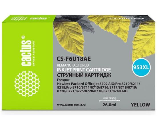Картридж Cactus CS-F6U18AE №953XL для HP OJ Pro 7740/8210/8218/8710/8715, жёлтый, 26 мл.
