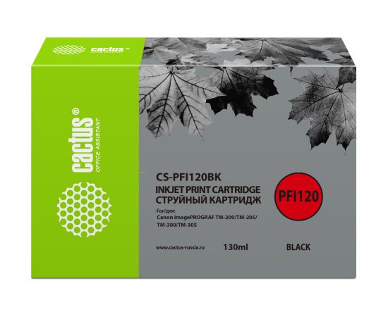 Картридж Cactus PFI-120BK (CS-PFI120BK) струйный черный (130мл) для Canon imagePROGRAF TM-200/TM-205/TM-300/TM-305