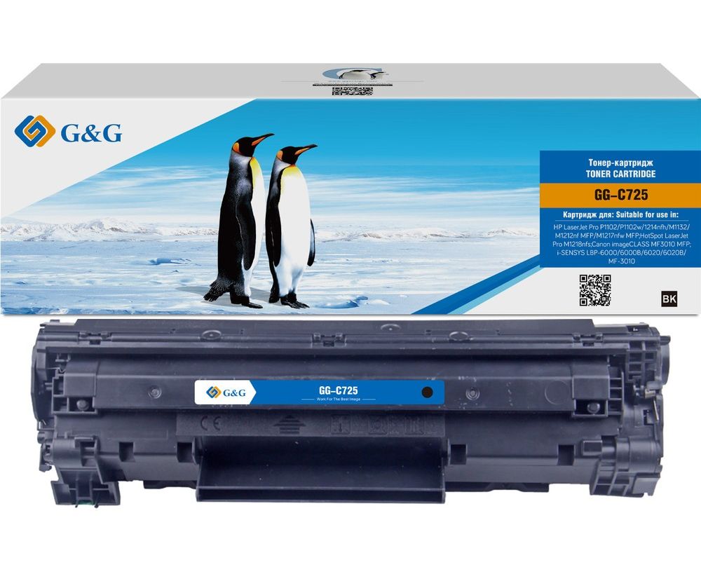 Картридж лазерный G&G GG-C725 черный 1600стр для Canon imageCLASS MF3010 MFP/LBP-6000/6000B/6020/6020B/MF-3010, LJ P1102/1102w Pro M1130/1212 HP